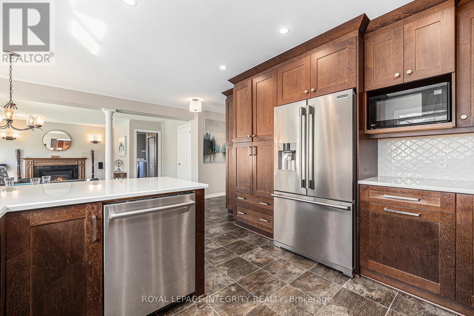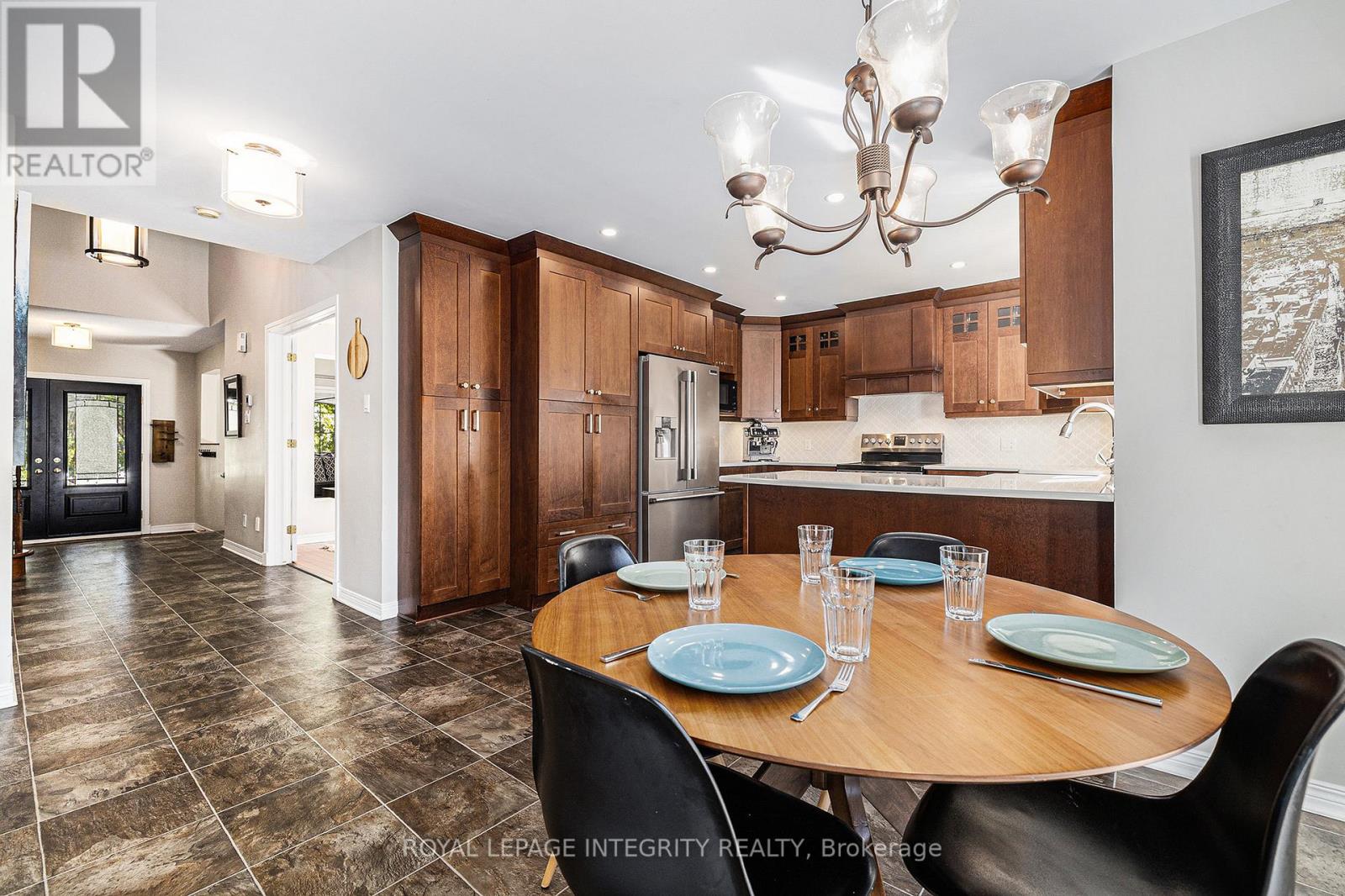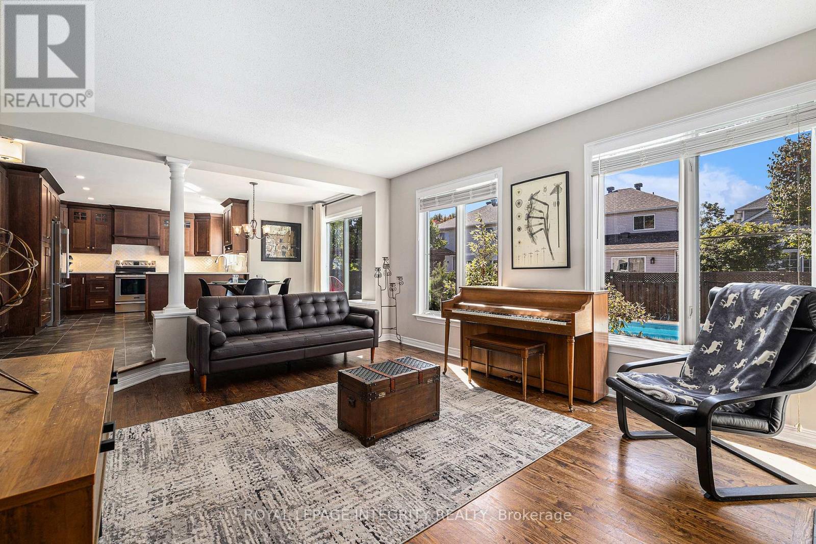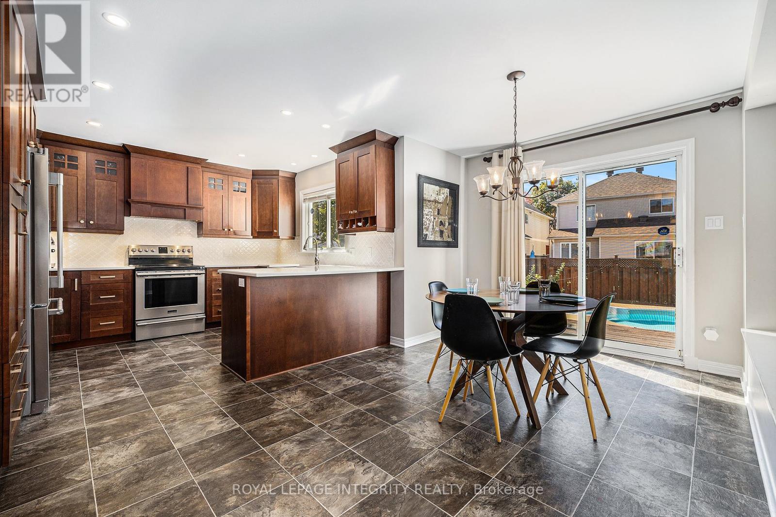This exceptional 4-bedroom residence is tucked away on a quiet, family-friendly street. It offers the perfect blend of comfort, style, and functionality. This home is designed for both relaxed family living and effortless entertaining. Step into your own private backyard retreat, complete with a heated saltwater pool, a spacious deck for sunbathing or dining al fresco, a charming stone patio with a pergola, and a grassy area perfect for kids or pets to play. Inside, the bright and open layout is filled with natural light, featuring a combination of hardwood and vinyl flooring throughout. The soaring cathedral ceilings in the living room create an airy, inviting atmosphere, while the kitchen offers birch cabinetry, quartz countertops, a stainless steel apron-front sink, and a stylish backsplash. The kitchen seamlessly connects to the eat-in area and cozy family room, where a sunken layout and gas fireplace provide a warm welcoming space. A functional main-floor mudroom/laundry room with direct backyard access adds everyday convenience for active families. Upstairs, you'll find four spacious bedrooms, including a serene primary suite featuring an 4 piece ensuite with a soaker tub, your perfect end-of-day escape. Don't miss the opportunity to make it yours! (id:37351)