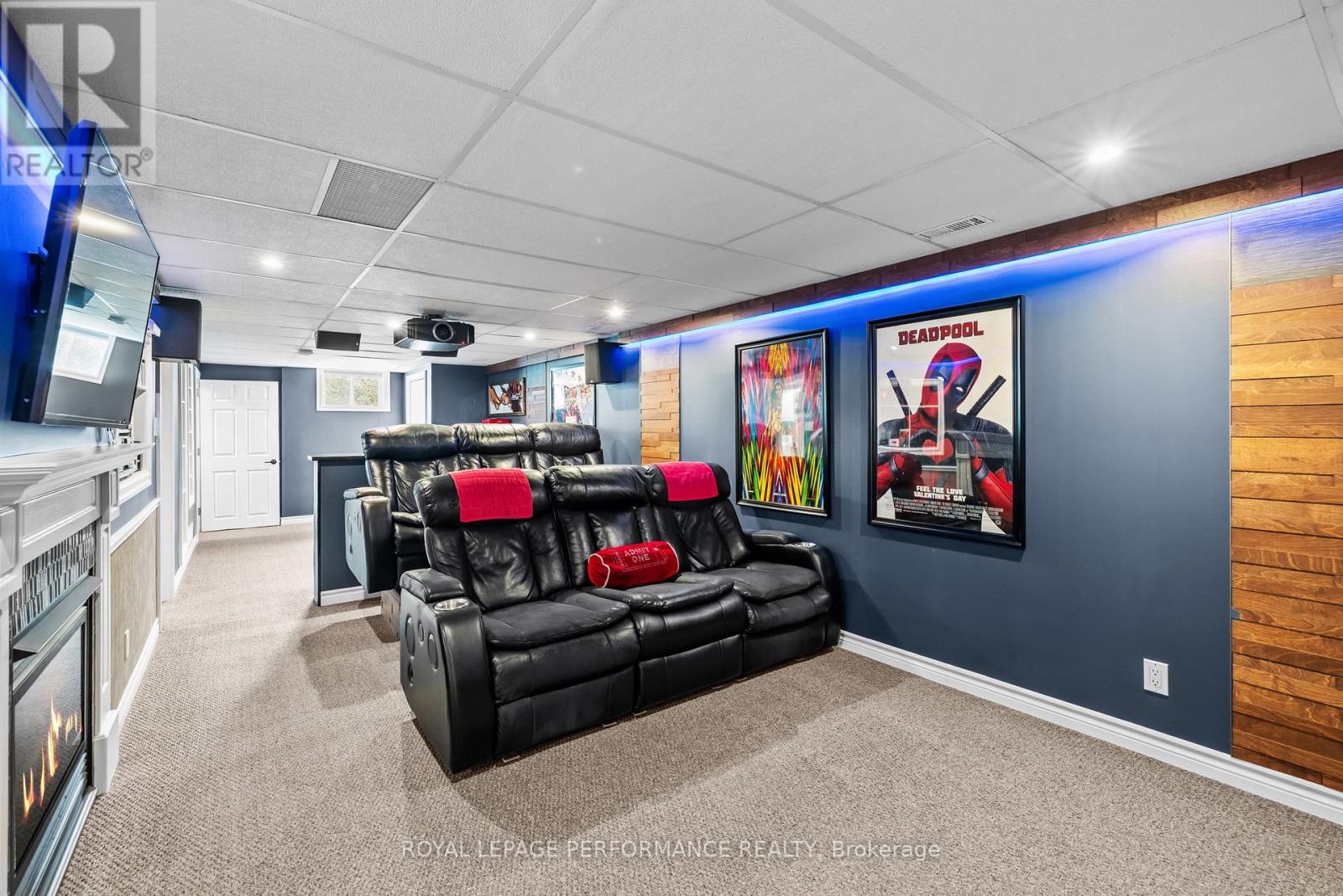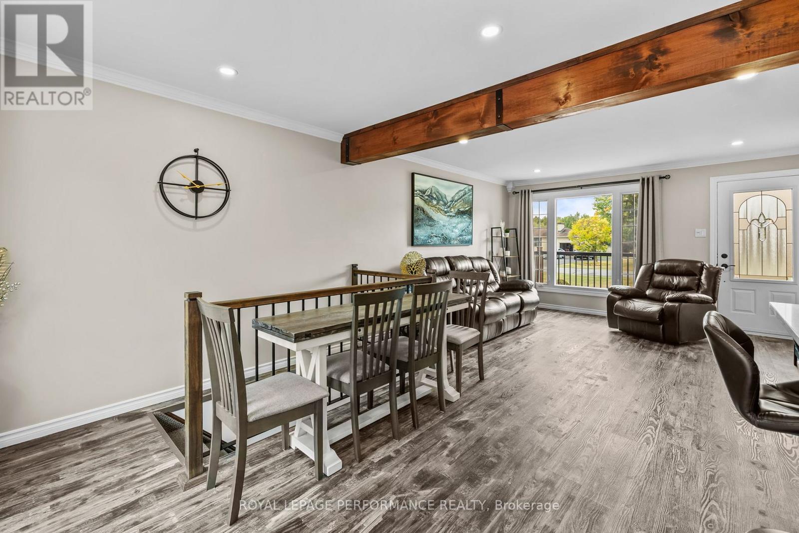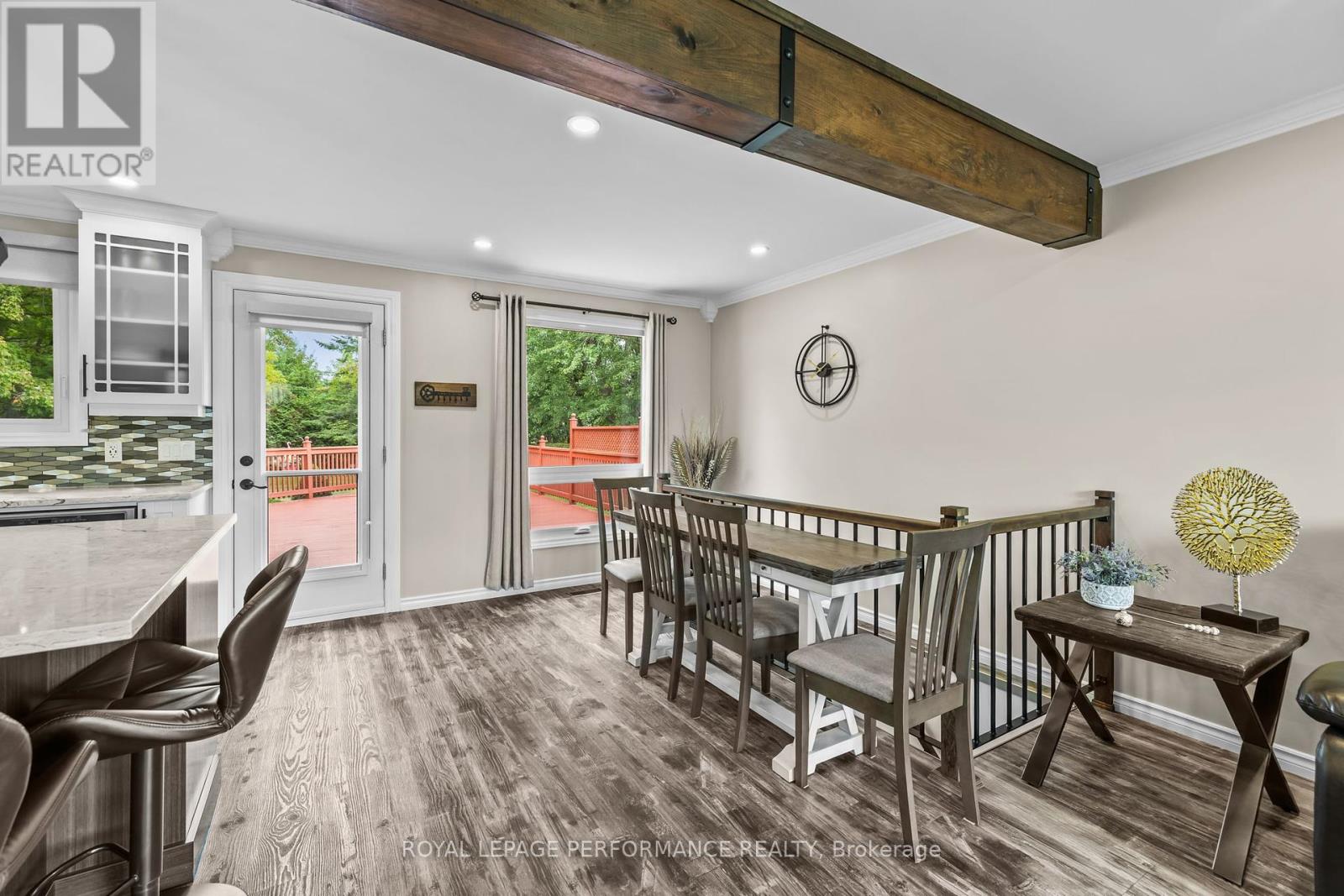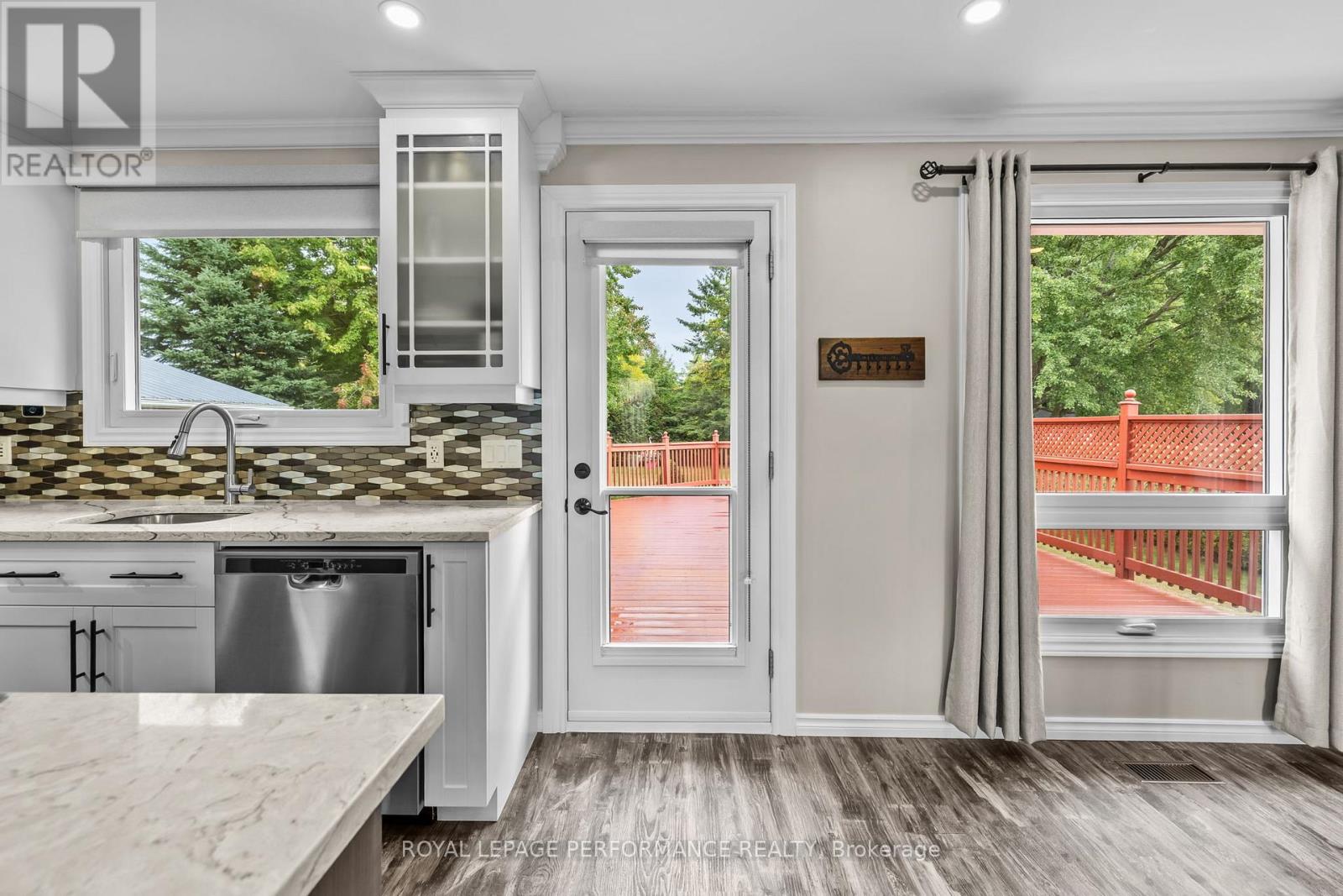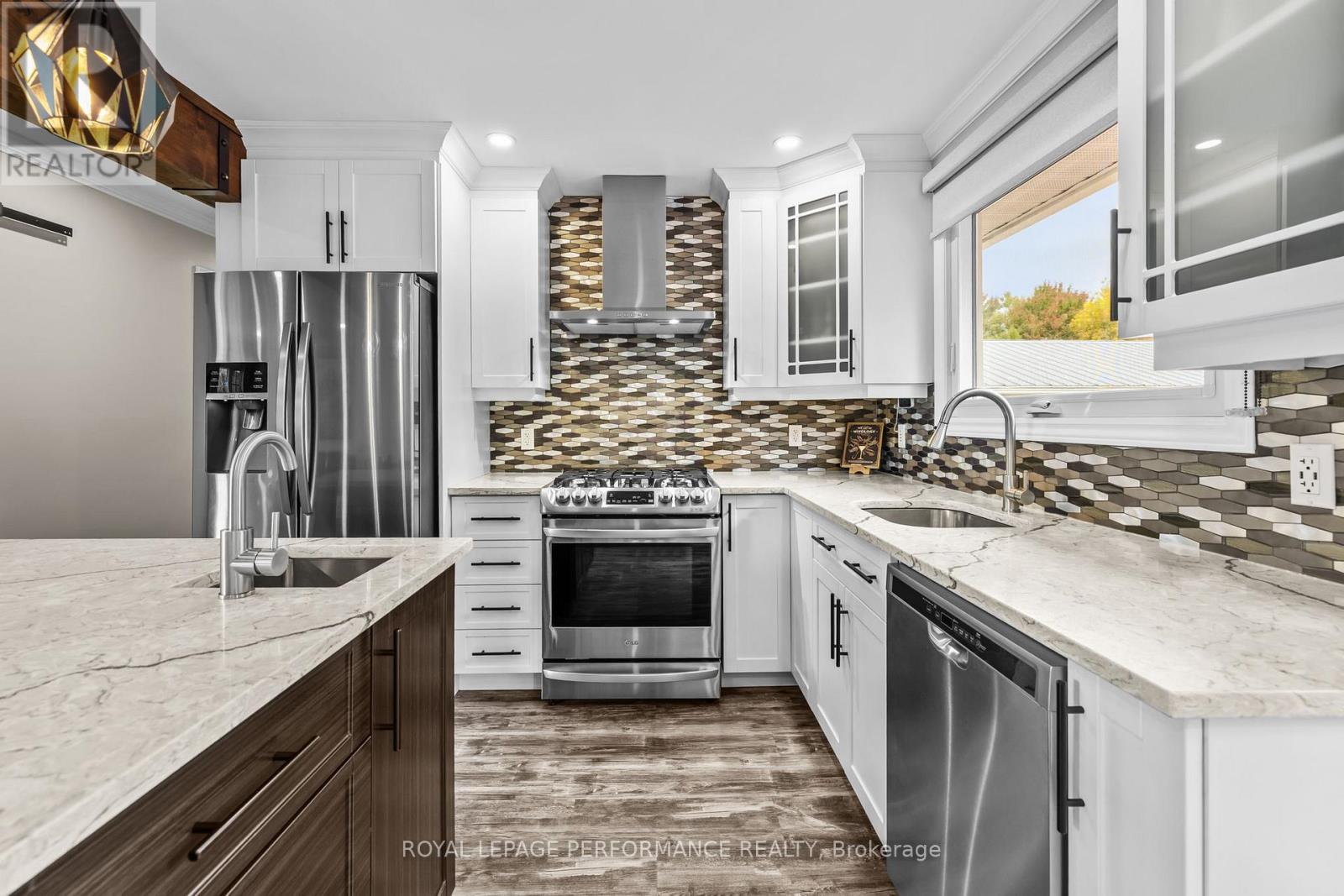 Welcome to 122 Maple Grove Street in the sought-after Forest Park community! Perfectly situated with easy access to Highway 417 and only 25 minutes from downtown Ottawa, this home is nestled on a quiet dead-end street and steps away from schools currently under expansion. Offering both convenience and privacy, step inside to a beautifully renovated home featuring an open-concept main floor with exposed beam, barn-door accents, and high end luxury vinyl flooring. The inviting living room with an electric fireplace flows seamlessly into the dining area and modern kitchen, complete with quartz countertops and direct access to a spacious (16' x 32') rear deck perfect for entertaining. Upstairs hosts three comfortable bedrooms and a full bath with granite countertops, while the fully finished basement extends your living space with an additional bedroom, a cozy family room with natural gas fireplace, a dry bar with granite countertops, built-in shelving, a second full bathroom with granite countertops, plus dedicated laundry, storage areas, & features a dri-core flooring system throughout. Car enthusiasts and hobbyists alike will love the insulated heated (natural gas) detached double garage (20' x 34') equipped with a metal roof, internet, heating, and water. Outside, the private backyard is a true retreat with mature trees, full fencing, an additional shed ('10x'14), and an impressive 100ft paved driveway + 72ft on the side of the garage leading to the shed. With modern renovations and smart functionality throughout, this home combines the best of private living with the convenience of municipal utilities. (id:37351)